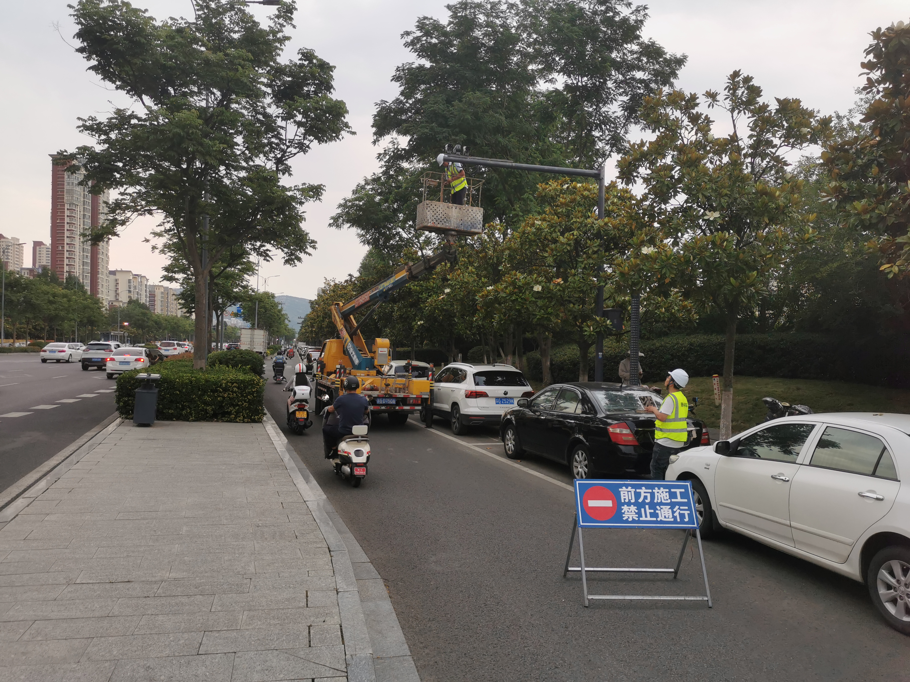 6月12日、13日,千亿官方站网站登录入口设备巡检员、安全员协同施工单位吊装车前往海宁东路、科苑路、东盐河路、朝阳路、东苑巷、郁洲路等路段,调试解决高位视频设备偏移、杂物附着、线路松动等异常状况,现场同步测试智慧停车平台在调试后能否清晰、准确地采集车辆信息,确保各路段泊位设备稳定运行。