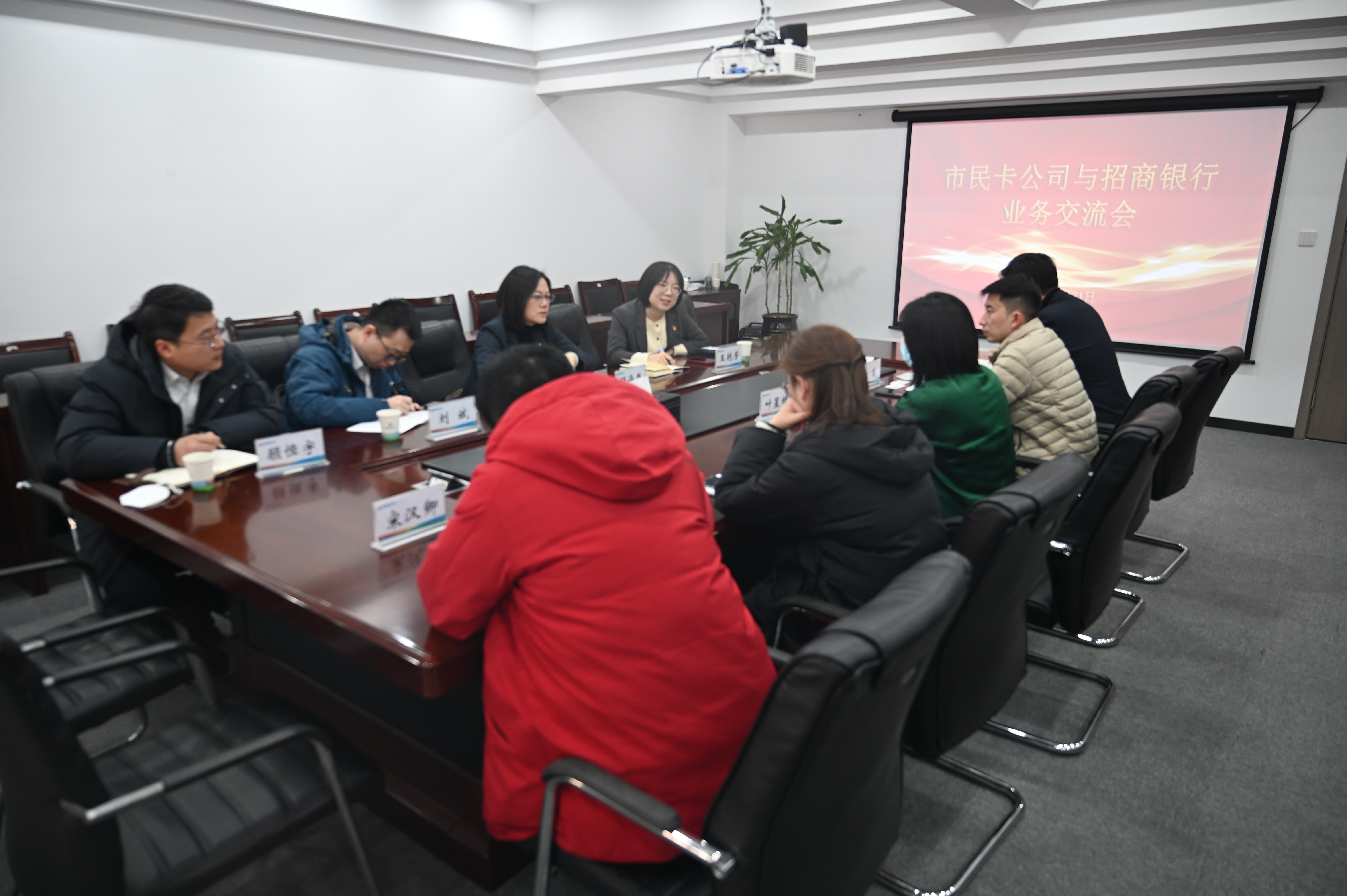 1月31日下午,市民卡千亿官方站网站登录入口与招商银行股份有限千亿官方站网站登录入口(以下简称招商银行)就市民卡金融属性拓展及相关业务召开银企交流会,市民卡千亿官方站网站登录入口党支部书记、总经理叶星妍、副总经理朱晓雯、总经理助理李昊与招商银行行长顾海燕等进行了深入交流。