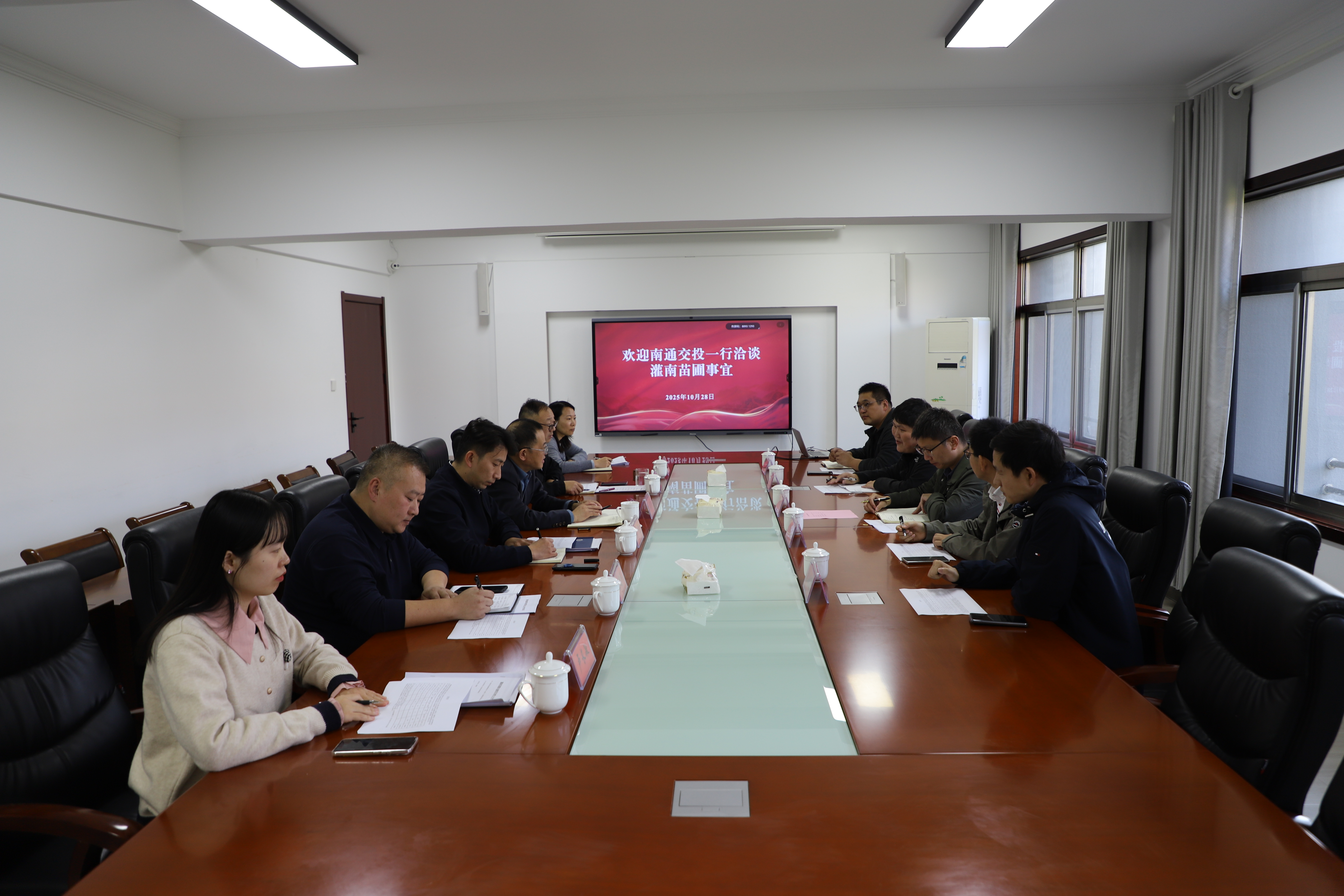 10月28日,南通交投千亿(中国)供应链千亿官方站网站登录入口、中星养护千亿官方站网站登录入口团队到访丰达千亿官方站网站登录入口,双方围绕灌南苗圃合作项目的推进与未来协作方向展开深度会谈。千亿官方站网站登录入口党总支书记、董事长王梁洲、总经理马轲、副总经理李昊及相关单位负责人出席会谈。