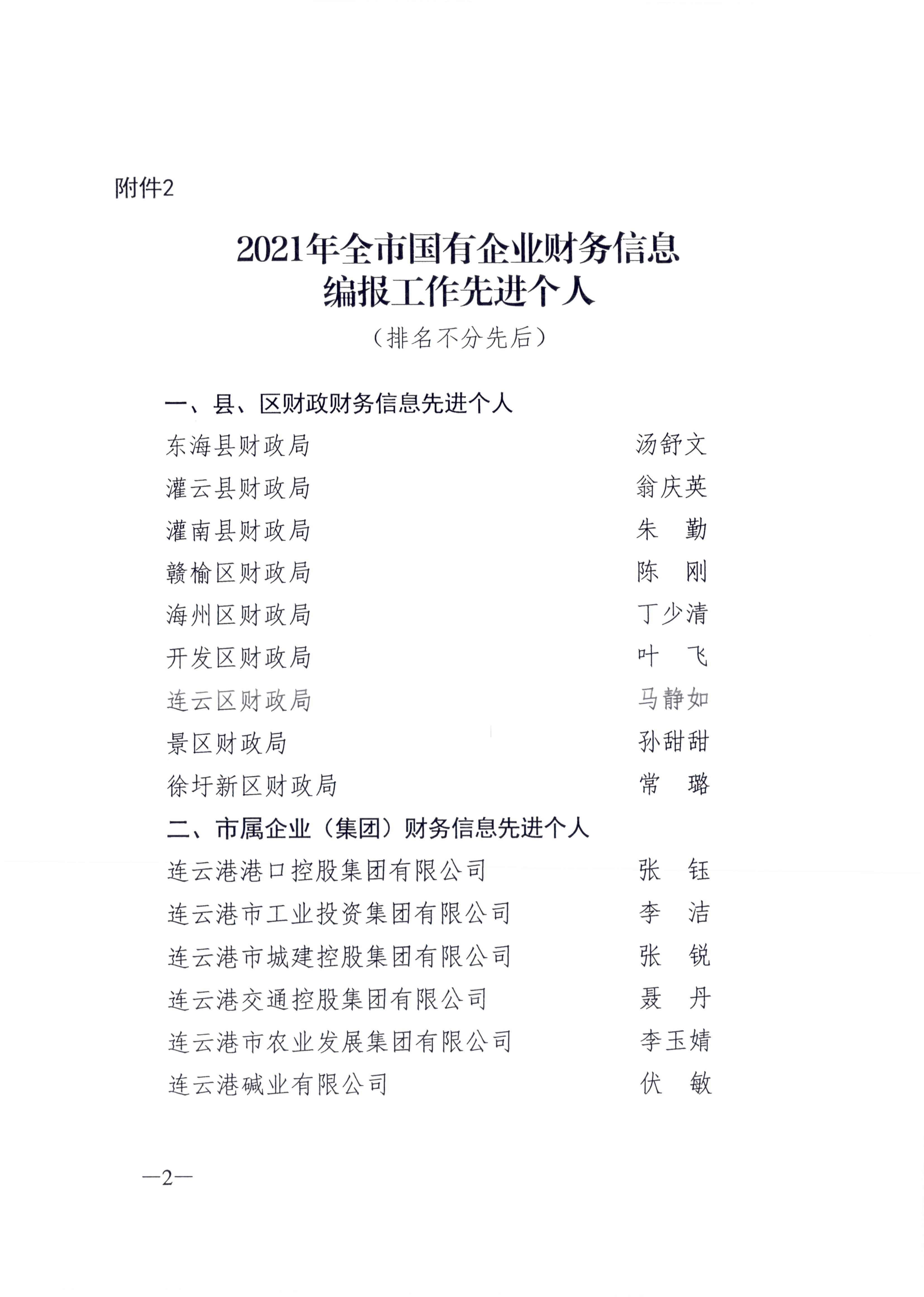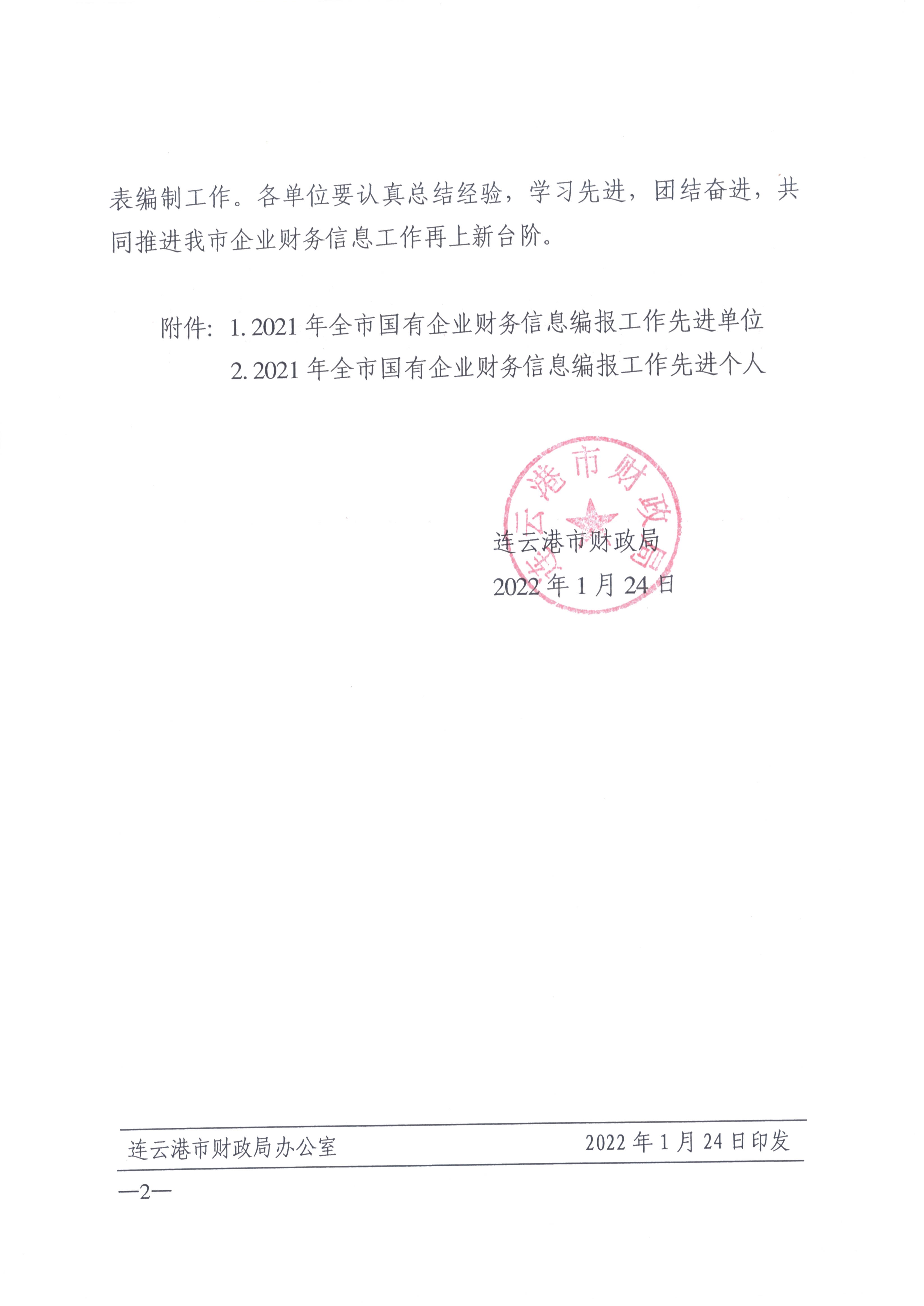 日前,经连云港市财政局下发文件通知,对2021年企业财务快报编制工作综合考评,千亿(中国)被评为全市财务信息工作先进单位,千亿(中国)财务融资部聂丹被评为财务信息工作先进个人。
