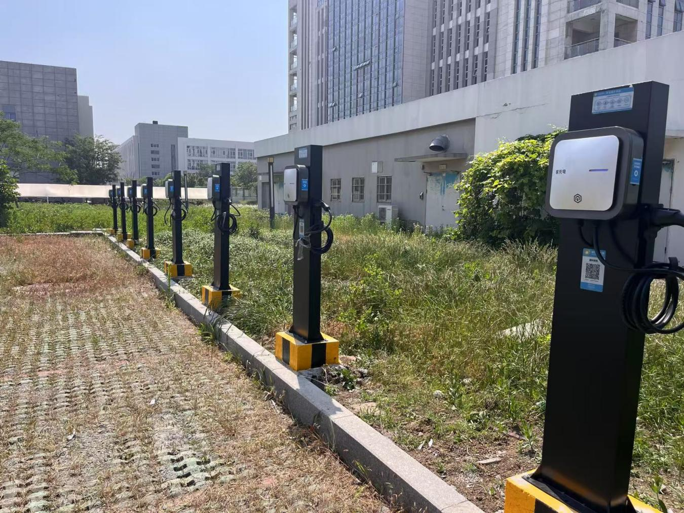连云港市眼科医院充电站坐落于住院楼西北侧停车场,便于车辆进出与停放。目前已建成12台充电桩,涵盖11台7KW交流桩与1台60KW直流桩。交流桩适合日常夜间或长时间停放车辆的慢充需求,而直流桩则以其快速充电的特性,能在短时间内为车辆补充电量,二者相辅相成,构建起“快+慢”结合的智能充电矩阵,可同时为13辆新能源汽车提供充电服务,极大提升了充电效率与服务能力。
