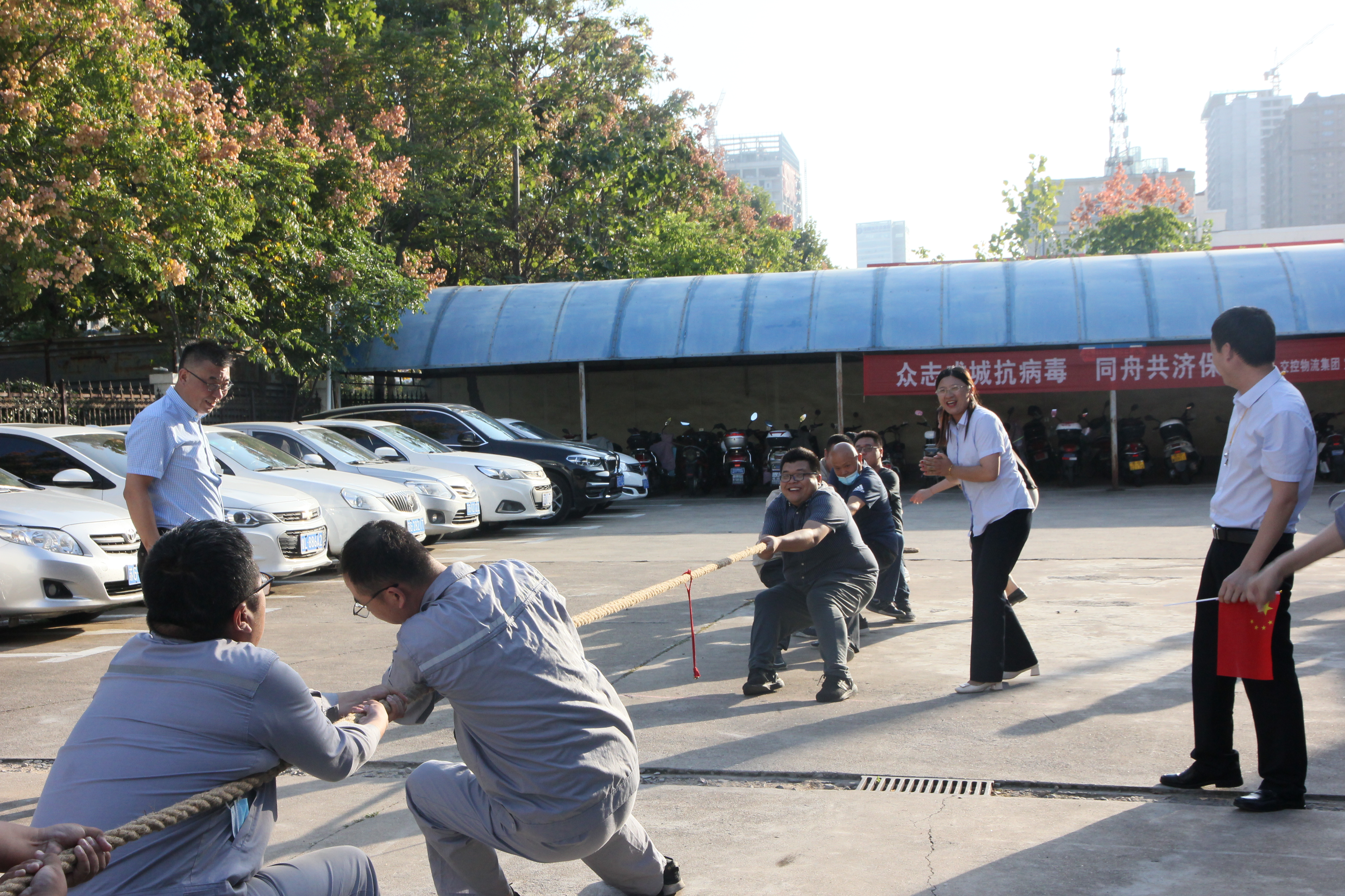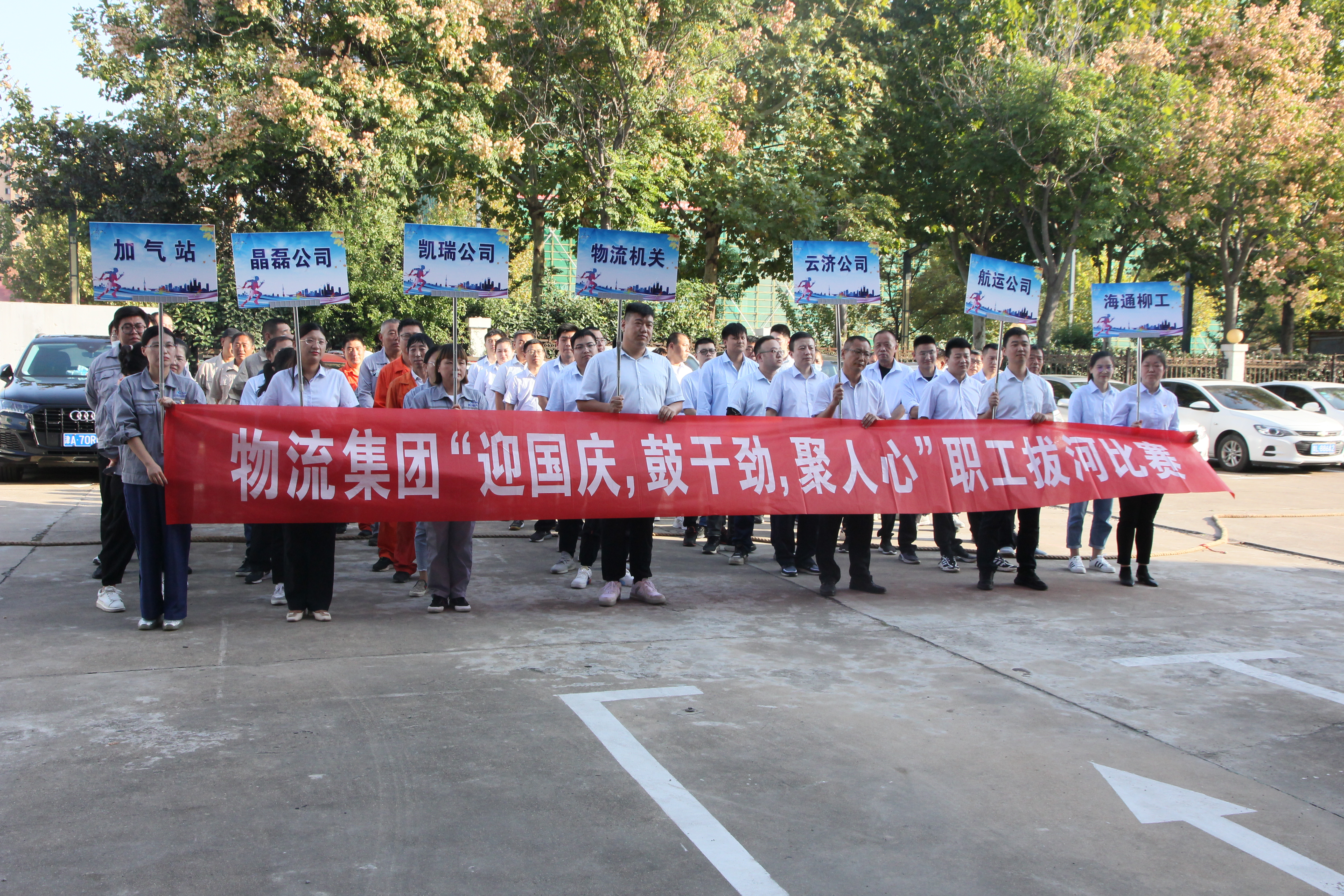 今年是建国72周年,为丰富物流千亿(中国)职工精神文化生活,促进各基层单位职工之间的交流,营造欢乐祥和、奋发向上的良好氛围,9月30日,物流千亿(中国)工会举办“迎国庆,鼓干劲,聚人心”职工拔河比赛活动,总部各基层单位共8支代表队64名人参加。