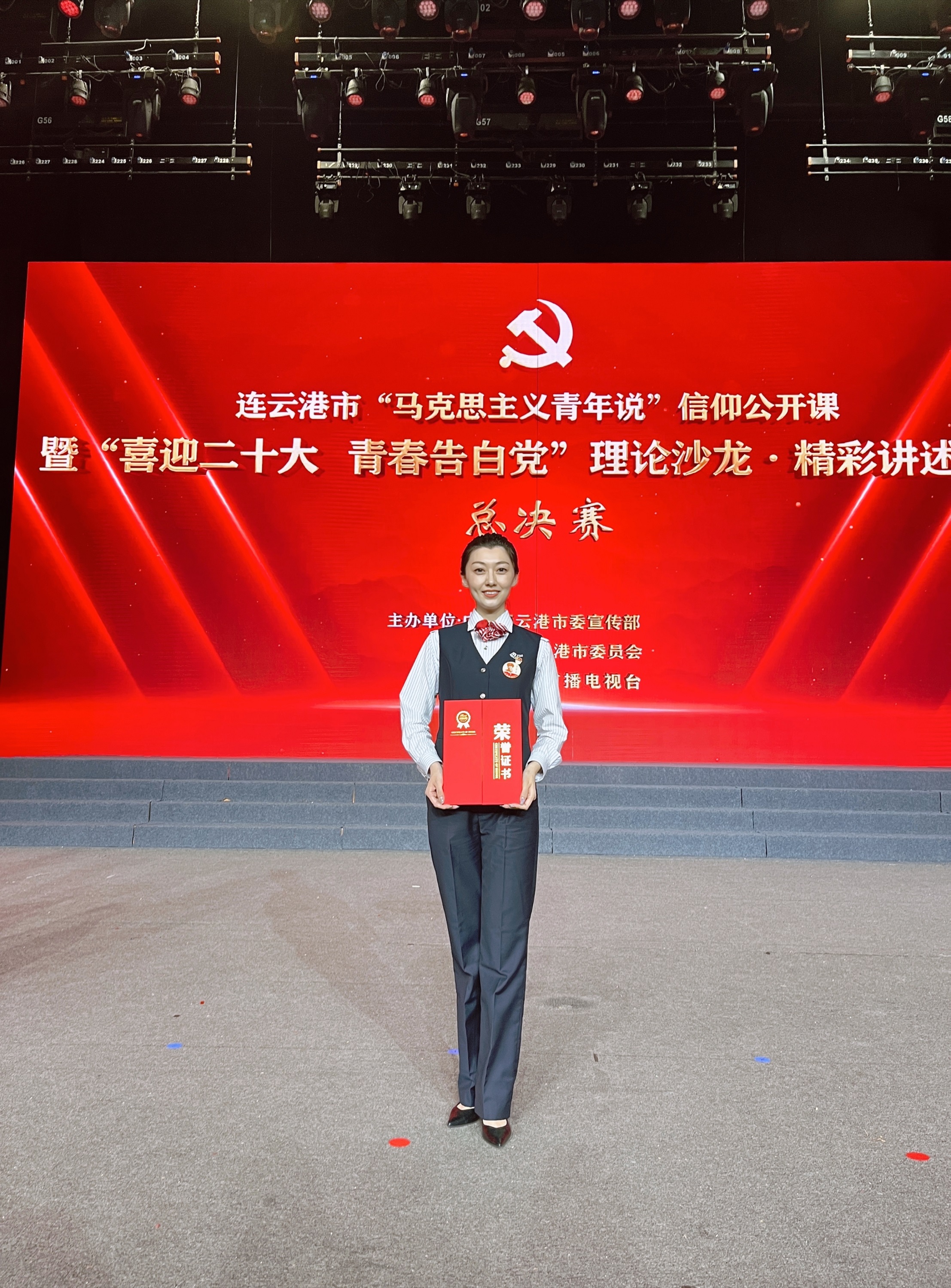 为深入学习宣传贯彻习近平新时代中国特色社会主义思想和党的十九届会议系列精神,不断推进马克思主义中国化、时代化、大众化,以实际行动迎接党的二十大胜利召开,7月27日,由市委宣传部、团市委、市广播电台联合举办的全市“马克思主义青年说”信仰公开课暨“喜迎二十大 青春告白党”理论沙龙?精彩讲述活动总决赛在市广播电台举行。连汽新浦汽车站总站“雷锋车”手李雨轩在此次比赛中荣获二等奖。