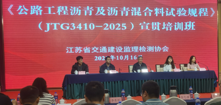 10月15日至17日,由江苏省交通建设监理检测协会主办的《公路工程沥青及沥青混合料试验规程》(JTG 3410-2025)新标准专题培训在南京顺利召开。新丝路检测千亿官方站网站登录入口选派技术负责人及相关试验骨干受邀参训,系统学习新规要点,为后续检测工作合规开展夯实基础。