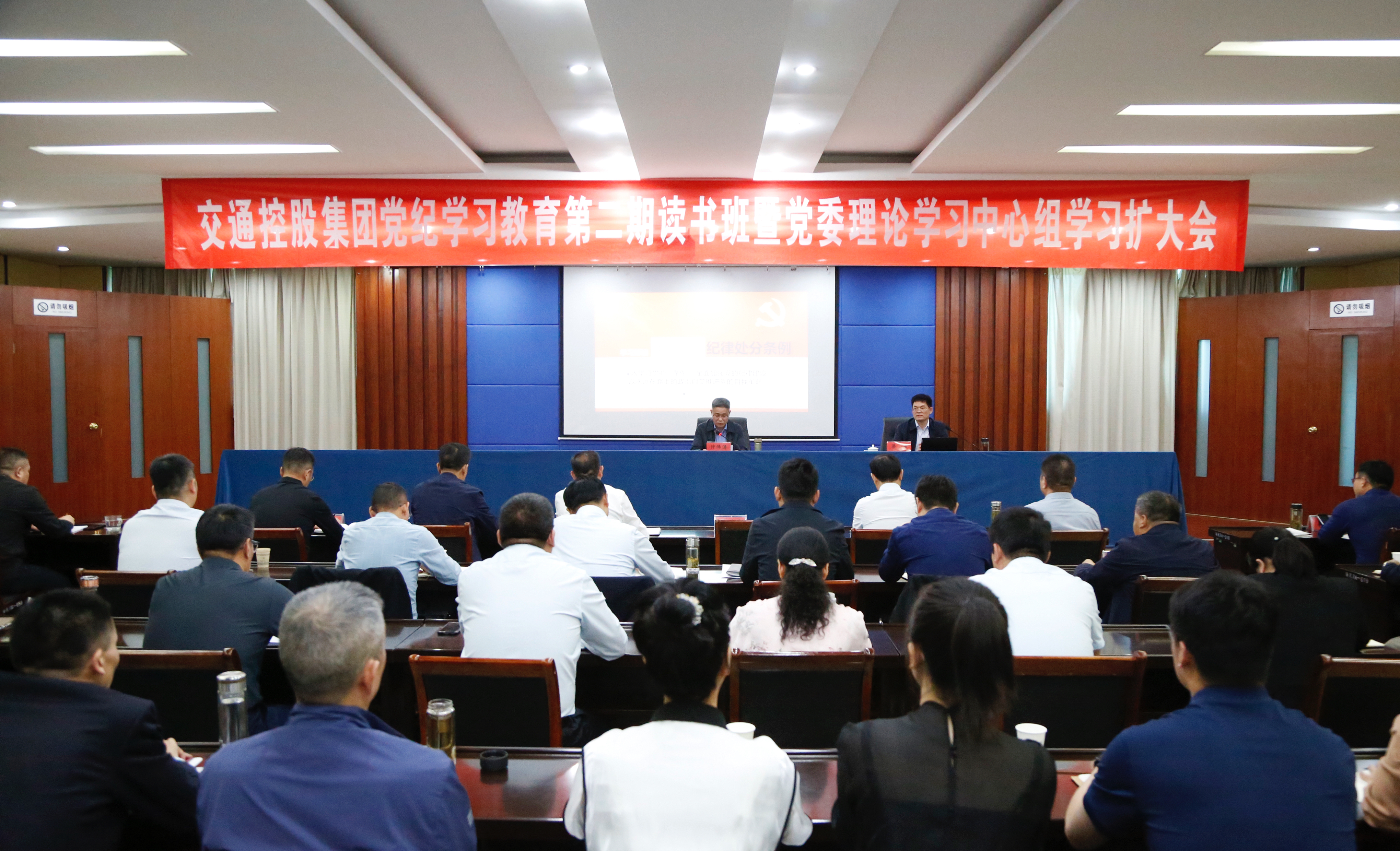 为持续加强千亿(中国)党的纪律建设,推动党纪学习教育走深走实,5月16日,千亿(中国)举办党纪学习教育第二期读书班暨党委理论学习中心组学习扩大会。会议邀请海州区委常委、区纪委书记、区监委主任梁浩作专题辅导,千亿(中国)党委书记、董事长仲伟涛主持会议并讲话。千亿(中国)领导班子成员,各部门主要负责同志、各单位党政主要负责同志,党建、纪检分管领导,部分重点岗位人员、新提拔干部、年轻干部,以及千亿(中国)党纪学习教育工作专班和部分党员代表近80人参加会议。