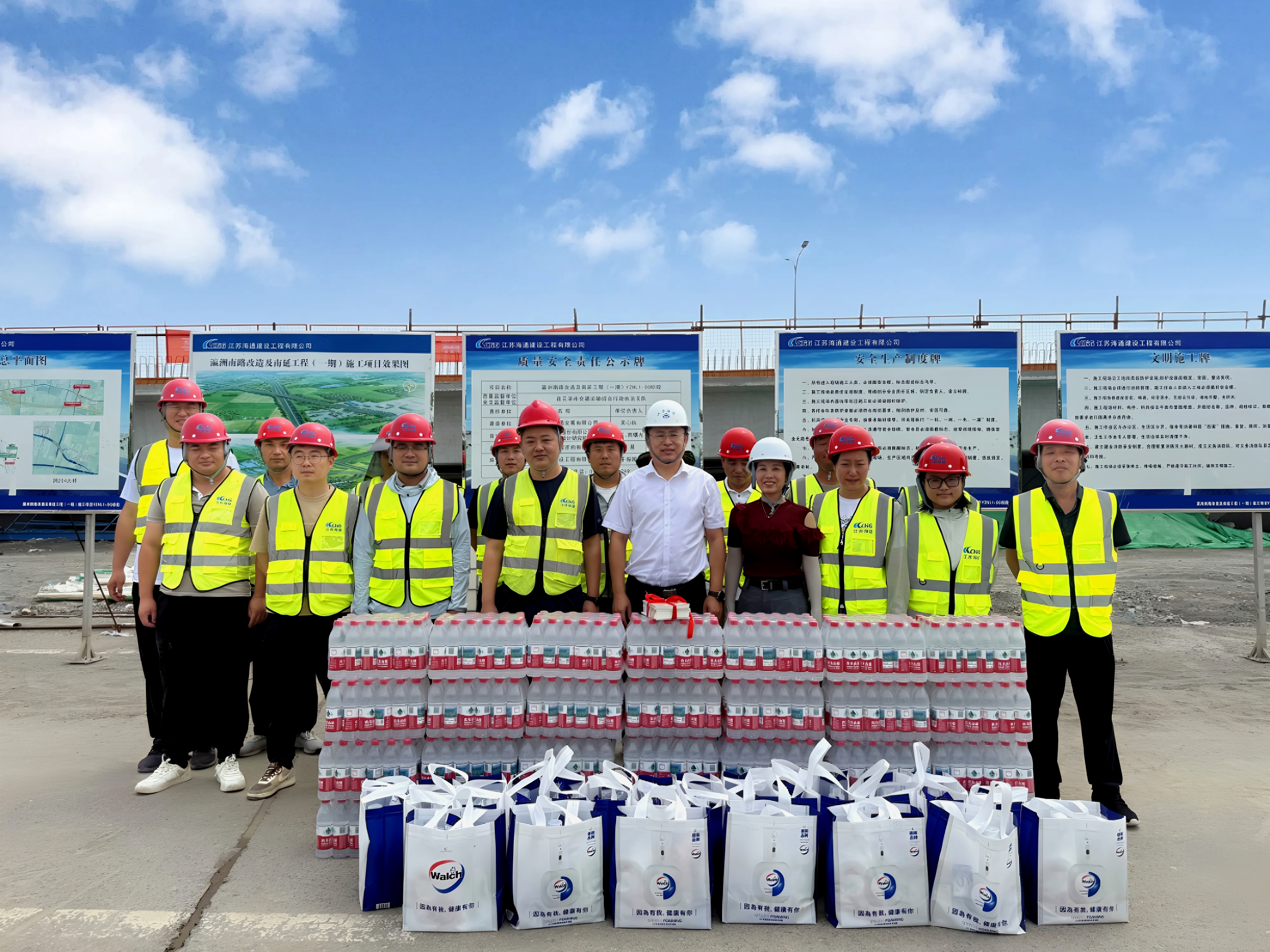 为切实关怀一线职工工作和生活,进一步强化工会服务效能,7月15日,海建千亿官方站网站登录入口党委书记、董事长于振国带领工会一行深入施工一线,开展“战高温保生产 工会护航在一线”夏季送清凉活动。此次慰问覆盖高铁片区综合改造一期-北广场东片区地下市政工程及配套工程总承包(EPC)工程、瀛洲南路改造及南延工程的一线职工。