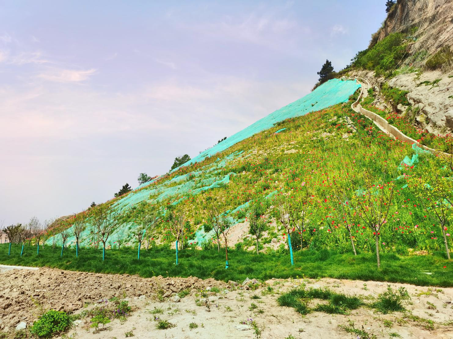花果山街道采石总厂小村北山宕口项目,由市交通千亿(中国)投资建设,工程造价约380万元,坡面总面积约 11941.6平方米,坡脚废弃地面积约6983.9平方米。根据项目区边坡地形条件以及治理工艺的不同,治理区分为2个区,采用削坡减载、回填压脚、砌筑挡墙、植被种植等方案,因地制宜的开展区域矿山地质环境治理工作。其中绿化工程山体坡面喷播复绿面积达1.3万平方米,挂设生态袋1万余个,种植榆树、侧柏树、构树各类苗木共2000余株。