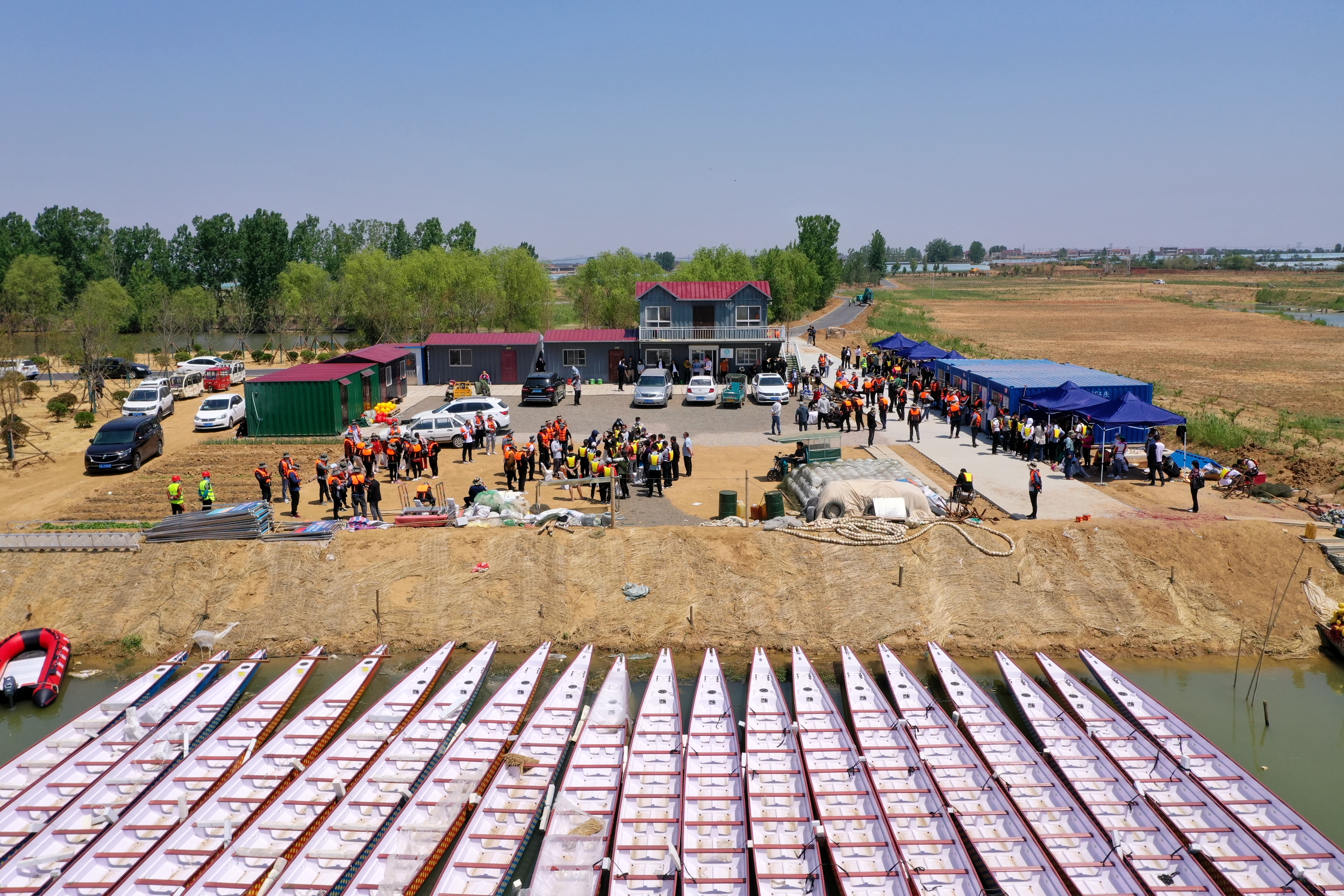 龙舟赛是石梁河水库幸福河湖建设清水进城行动的重要活动之一,交通千亿(中国)为保障本次龙舟赛事顺利进行,提前两个月前将购置的二十艘龙舟及一系列配套设备下水备用,邀请了曾经为2次国家级龙舟赛事布设赛道的专业团队。本次赛道总长度500米,共六条。
