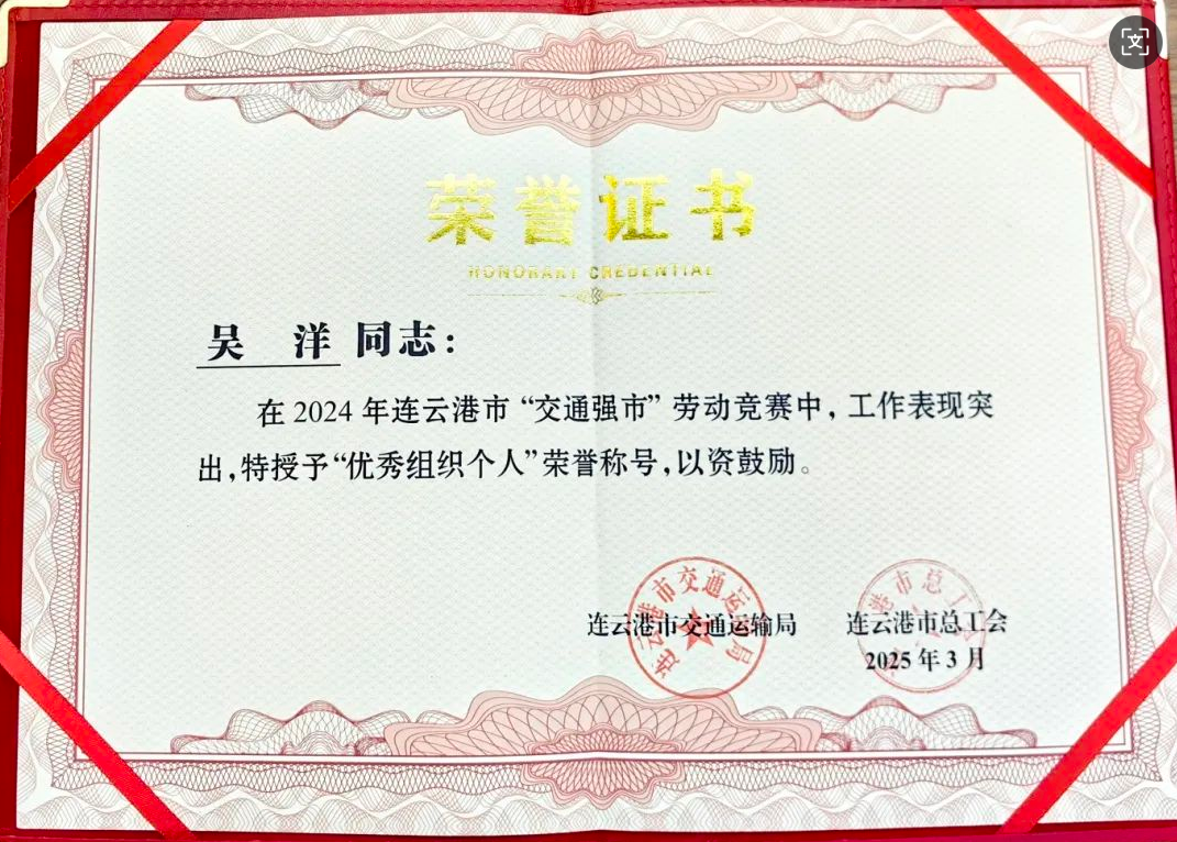 近日,市总工会、市交通运输局联合发布了2024年连云港市“交通强市”劳动竞赛评选结果,物流千亿(中国)获评连云港市“交通强市”劳动竞赛优胜集体;权属信泰千亿官方站网站登录入口LNG储配站建设班组荣获优胜班组称号;信泰千亿官方站网站登录入口副总经理吴洋获评优秀组织个人。