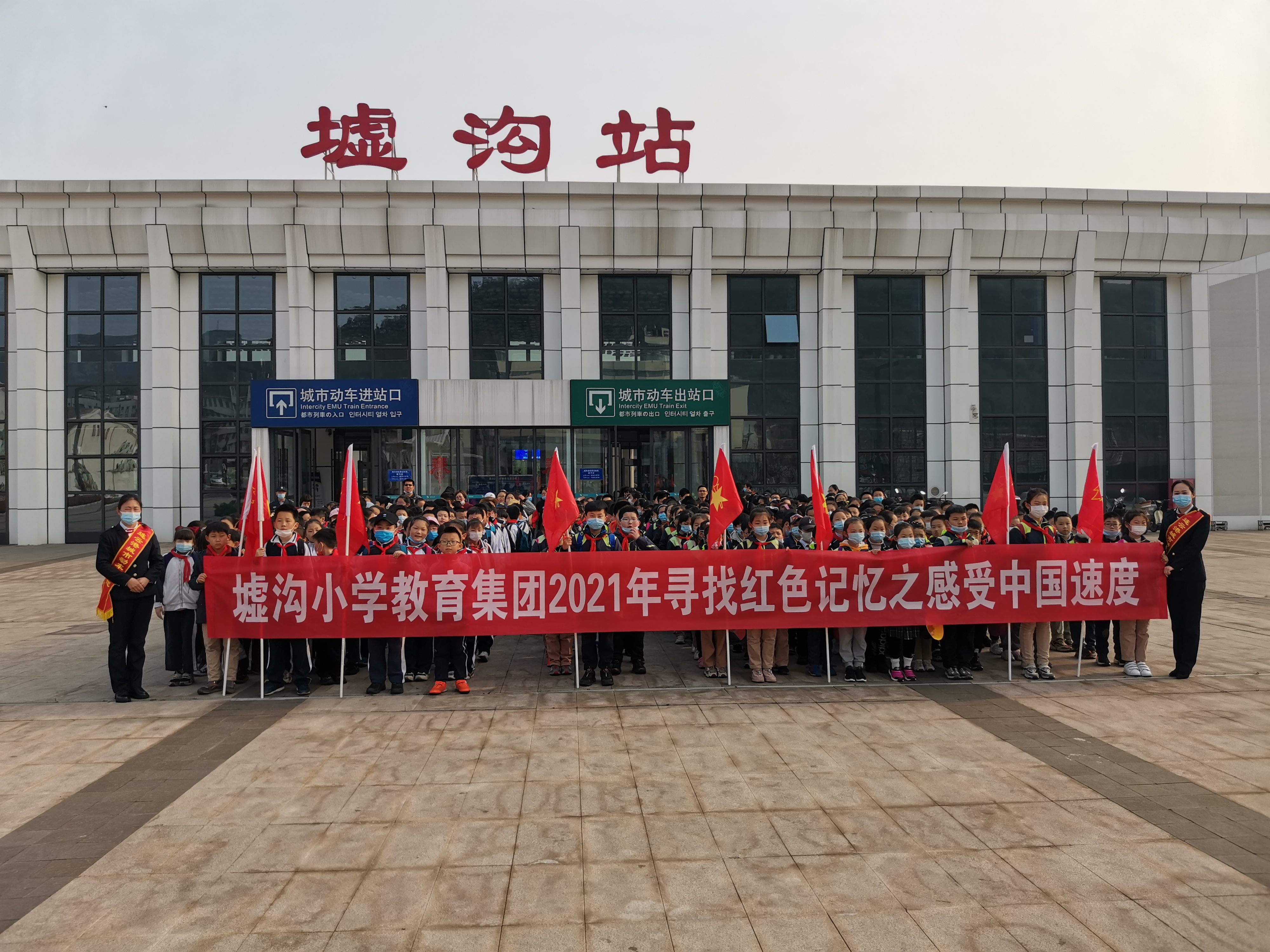 近日,墟沟小学的师生们整装待发,来到城市动车墟沟站,体验城市动车舒适快捷。城市动车站务员们热情接待了他们,站务员给同学们介绍了墟沟站的概况,尤其是墟沟站的顶棚设计采用起伏多变的波浪造型,它象征着“星辰大海”,体现港城特色的海洋文化。同学们在月台等候列车时,看见列车驶入站台,同学们沸腾了,大声说到:“美猴王踏着祥云向我们飞来了。”在车上,站务员们为同学们讲解了城市动车的概况、乘车禁止携带的危险品及高铁、动车、普速列车的区别。高铁是以G开头的车次,动车是以D开头的车次;高铁时速是在300公里以上,动车时速是在200公里以上;高铁使用的是专用铁轨,动车使用的既可以是高铁专用铁轨,也可以是经过改装的普通铁轨;高铁可以称作专线,设置的站台很少,动车全线设置,站台较多;动拖比不同,高铁属于强动力分散型,动车属于弱动力分散型;动车比普速列车速度快是因为动力不同,动车是无牵引力轨道车辆,装配有驱动车轮;而普速列车是由一至三节机车牵引若干车厢或车皮组成。同学们听完讲解,热情高涨,并与站务员相互交流。在不知不觉中,列车已经到达了终点站连云站。墟沟小学张校长讲,通过这次活动不仅让同学们感受到了城市动车的舒适快捷,也丰富了同学们的课外知识,并为你们热情服务和业务素养点赞。