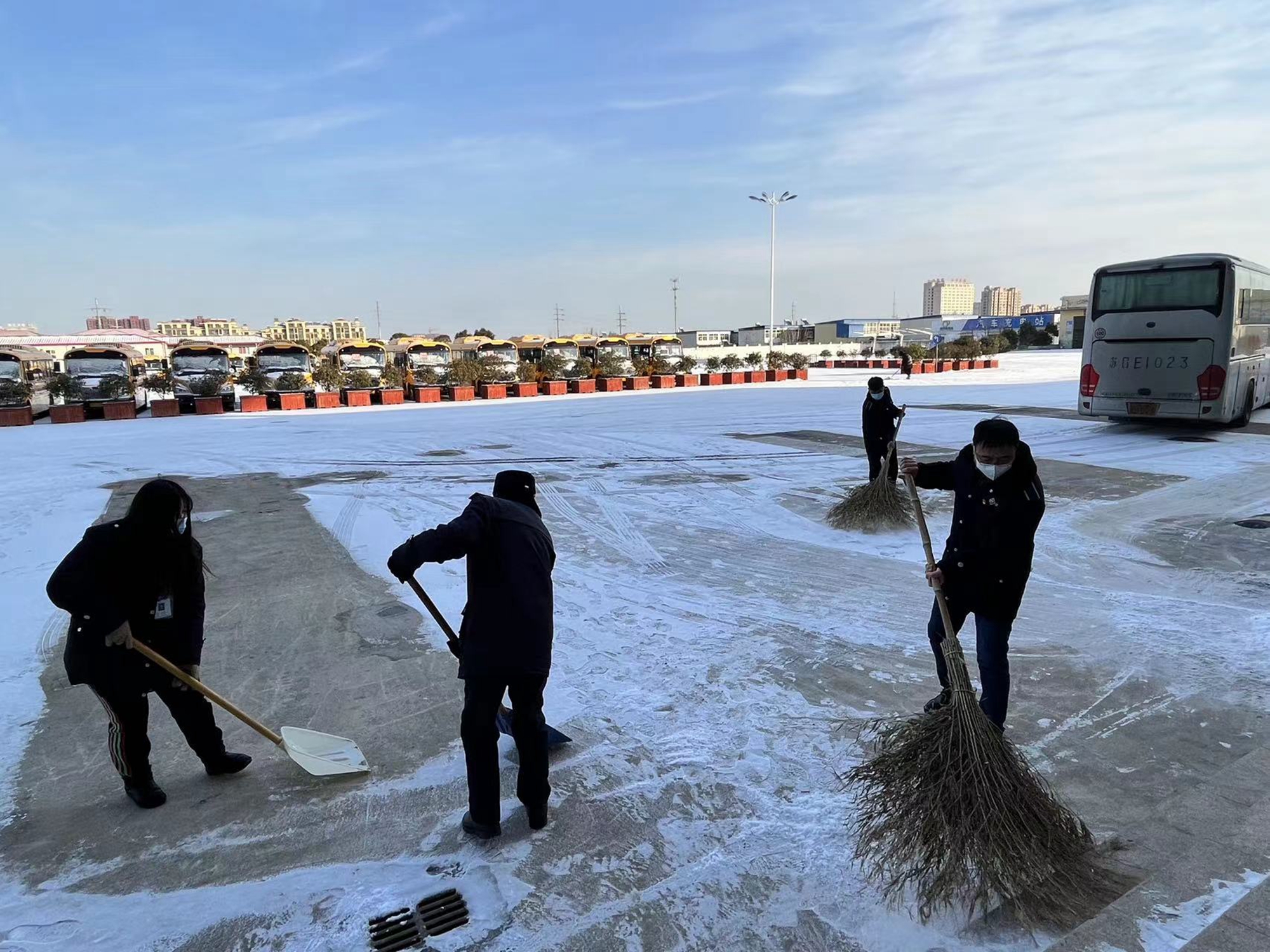 近日,连云港市受强冷空气影响,气温骤降,风雪交加,道路结冰,为保障客运车辆、职工旅客出行安全,最大程度消除安全隐患,1月15日,连汽灌云千亿官方站网站登录入口第一时间组织干部职工开展扫雪活动。