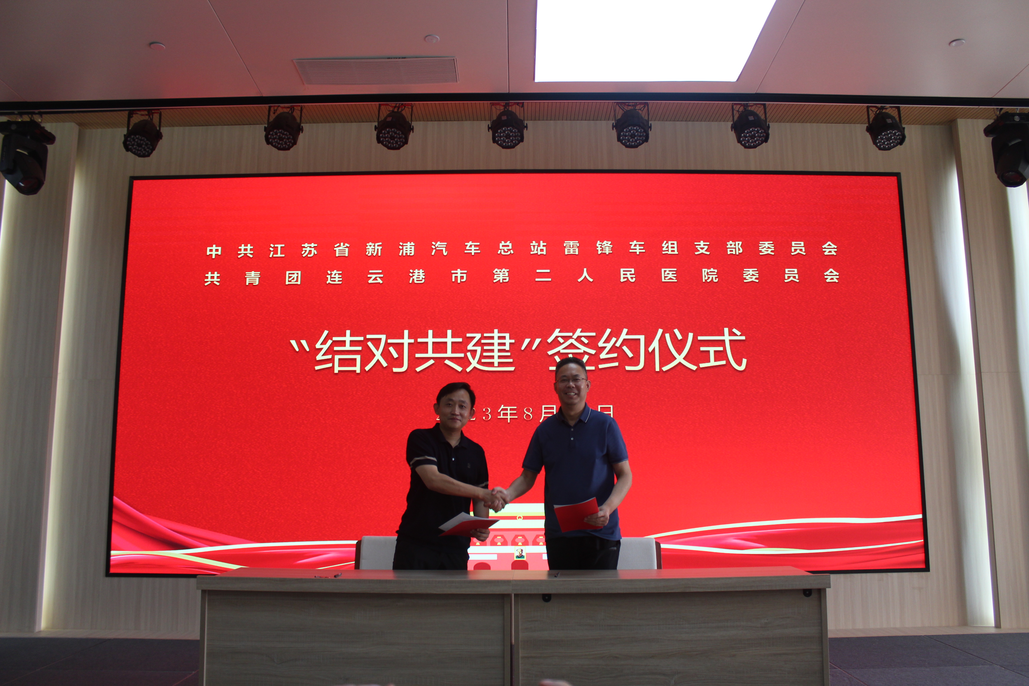 近日,中共江苏省新浦汽车总站雷锋车组支部委员会与共青团连云港市第二人民医院委员会共建合作签约仪式在新浦汽车总站雷锋车大讲堂举行,旨在打破行业、领域壁垒,推动资源共享、优势互补,以高质量党建引领国有企业、公立医院高质量发展。
