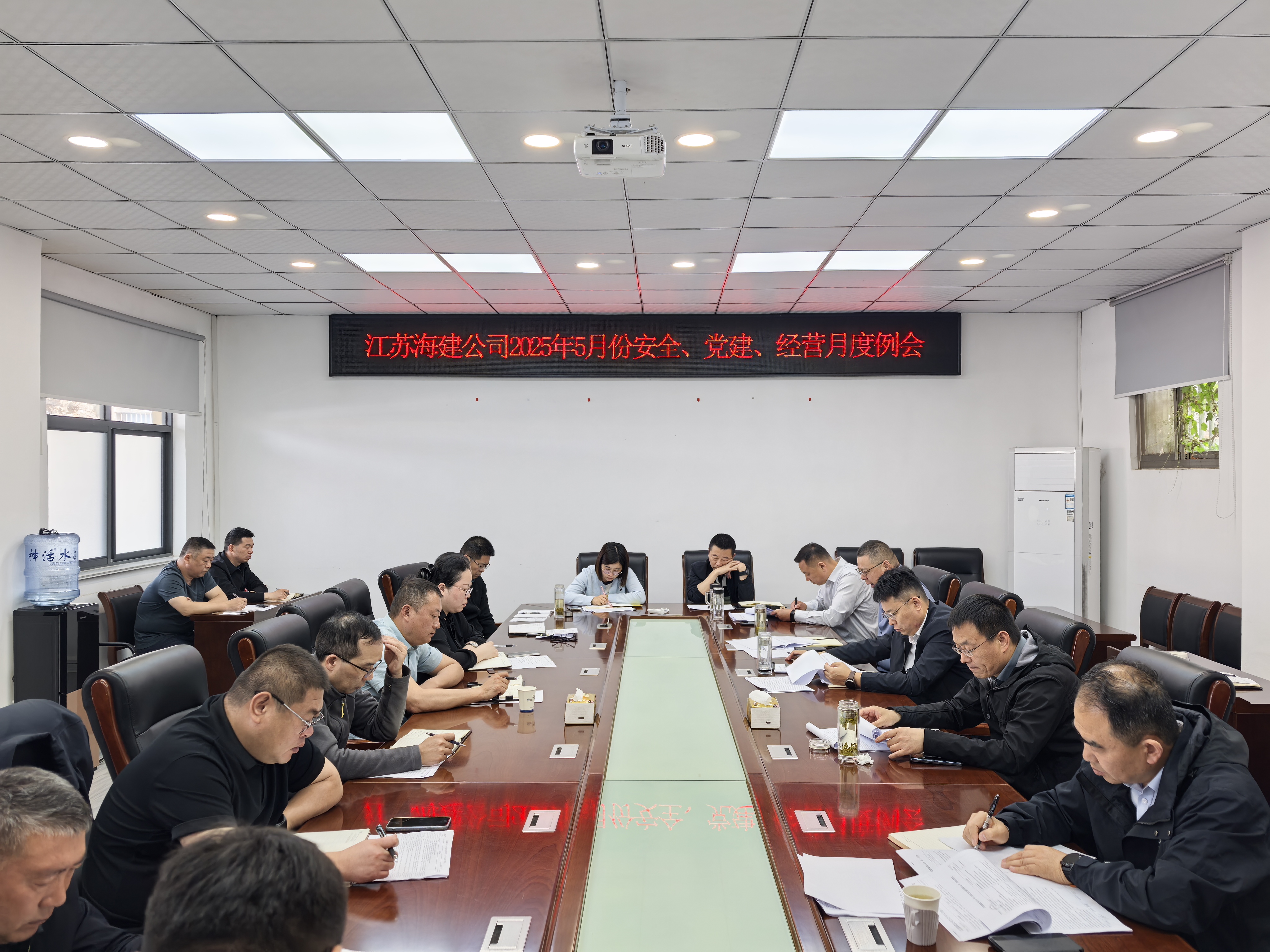5月6日,海建千亿官方站网站登录入口召开5月份安全、党建、经营月度例会,全面总结阶段工作成效,部署下一阶段重要任务。千亿官方站网站登录入口领导班子成员,各单位、各部门主要负责人共计20人参加会议,会议由总经理徐其翔主持。
