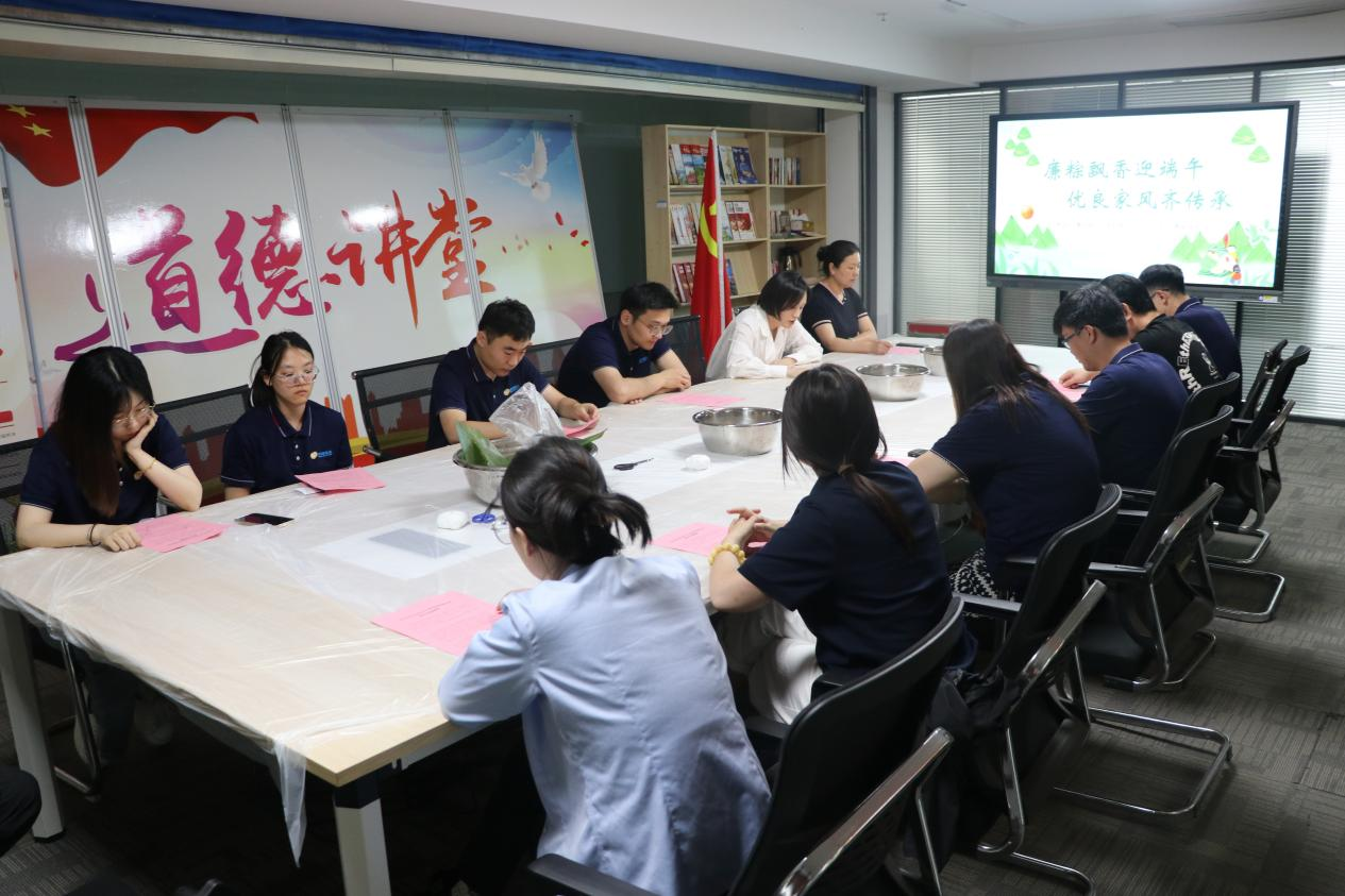 活动伊始,由党总支纪检委员马一骄带领党员干部们学习习近平总书记关于注重家庭家教家风建设的重要论述,集体观看纪录片《周恩来的家风家规》,接着,大家围在一起,洗“廉”叶、泡“廉”米、填“廉”馅、扎“廉”绳,共包“廉心粽”。活动现场弥漫着粽叶香,其乐融融,共同体验传统文化的魅力。清香的粽叶、晶莹的糯米在大家手中飞舞飘香,一颗颗形态各异、饱含祝福的粽子呈现在眼前,这些粽子不仅凝聚着大家的劳动成果,更承载着对传统节日的敬意和对彼此的美好祝福。
