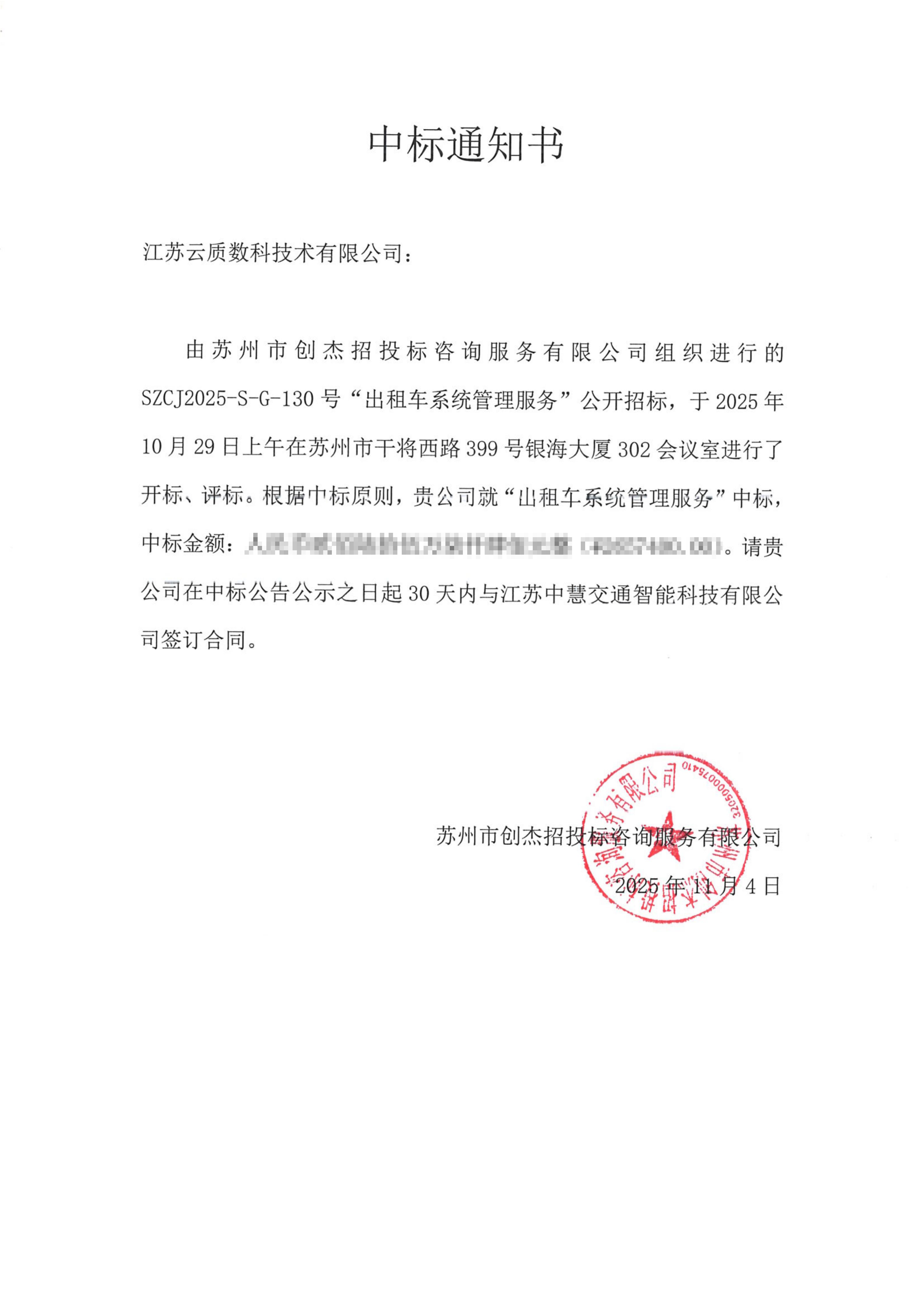 近日,数科千亿官方站网站登录入口交通运维事业部传来捷报!为积极拓展外围业务版图,事业部主动出击,深入调研各市信息化建设需求,凭借专业的技术方案与丰富的运维经验,在激烈竞标中脱颖而出,成功拿下苏州出租车系统服务项目。