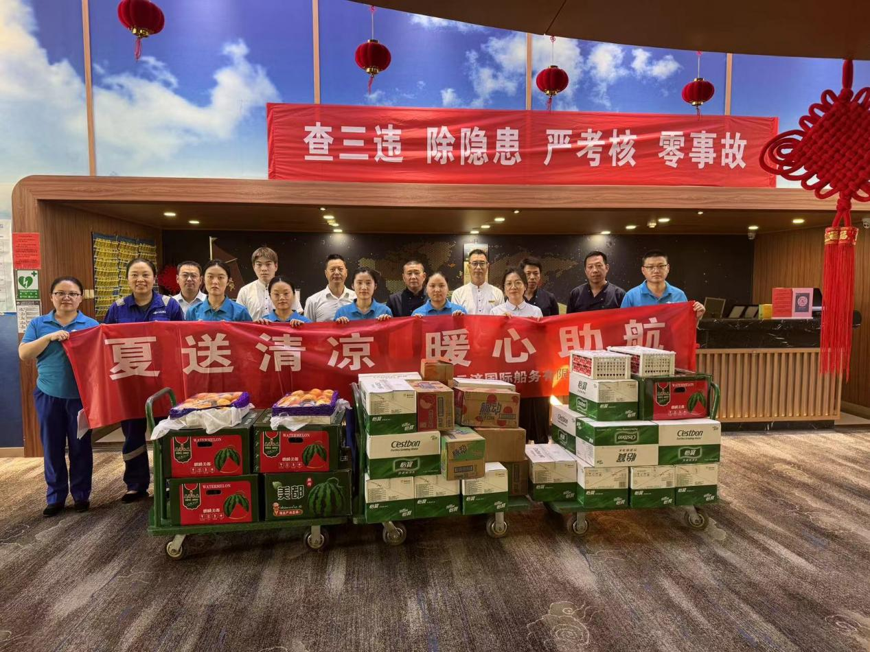 7月24日,云济船务千亿官方站网站登录入口开展“夏送清凉,暖心助航”夏日送清凉慰问活动,将关怀与清凉精准送达“和谐云港”轮全体在岗乘务员身边。