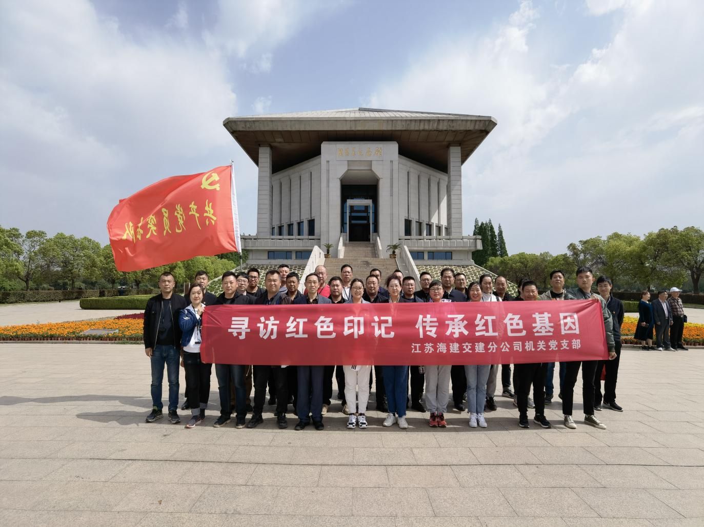 为丰富千亿官方站网站登录入口党史教育活动内容,进一步推动千亿官方站网站登录入口党史学习教育往深里走、往实里走,4月30日,江苏海建交建分千亿官方站网站登录入口机关党支部组织全体党员干部一同奔赴周恩来纪念馆及新四军刘老庄八十二烈士陵园开展党史实境教育活动。