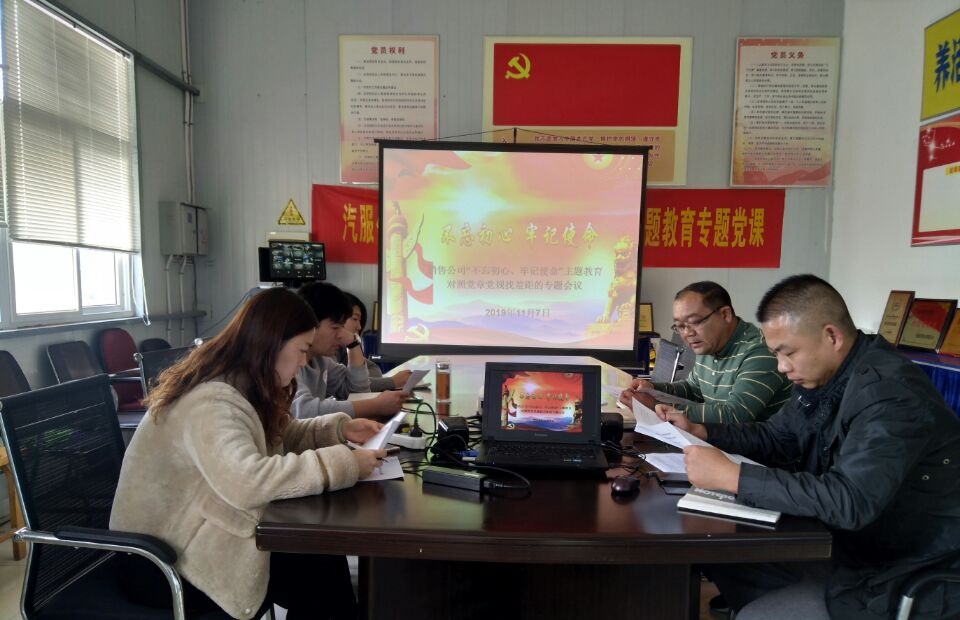 根据市委“不忘初心、牢记使命”主题教育要求和汽服千亿官方站网站登录入口党委安排,11月12日下午,销售千亿官方站网站登录入口党支部召开了“对照党章党规找差距”的专题会议。千亿官方站网站登录入口各党员、积极分子参加了会议,会议由党支部负责人罗权主持。